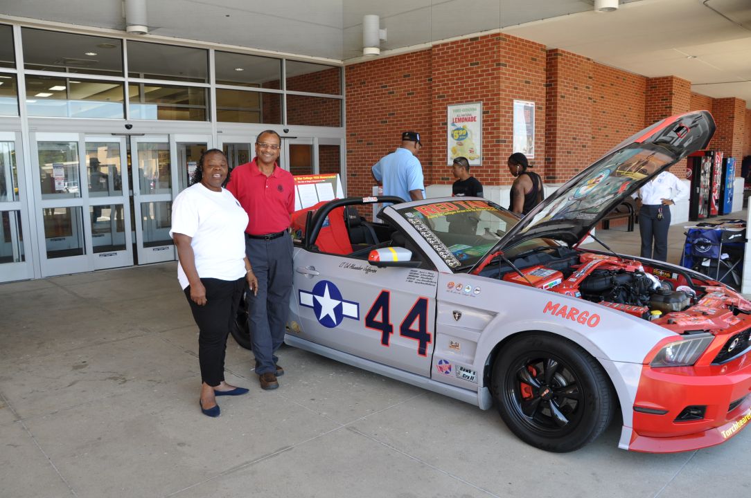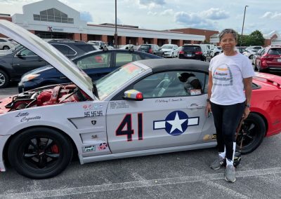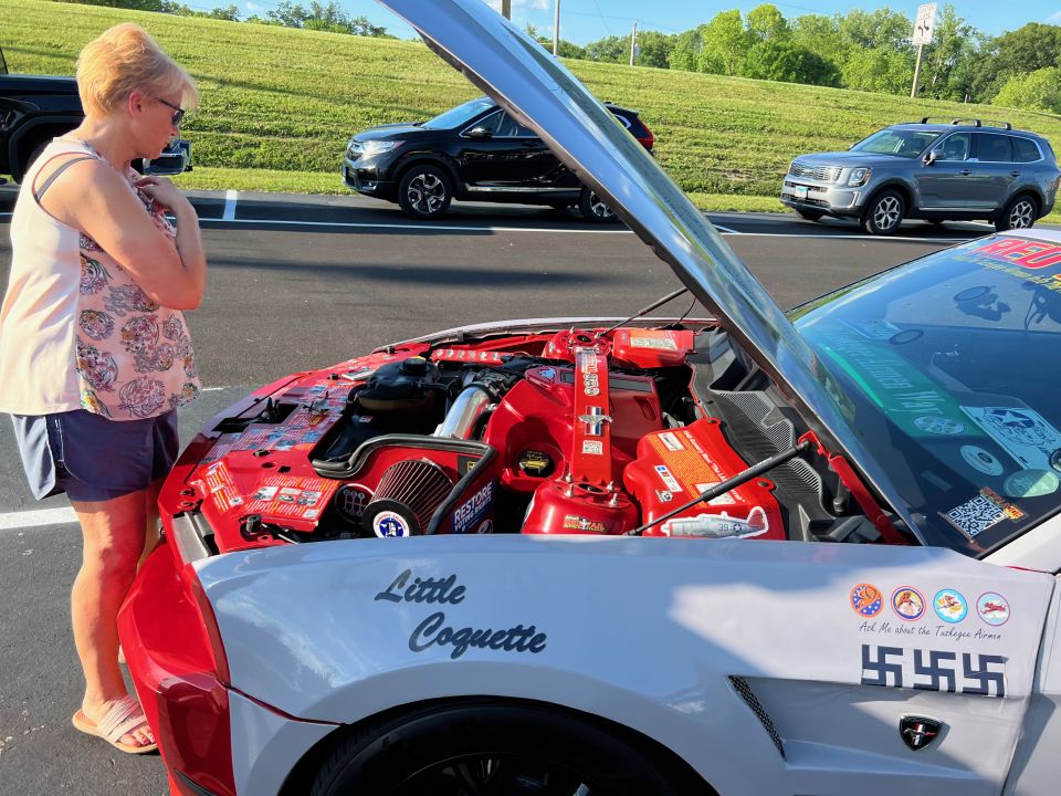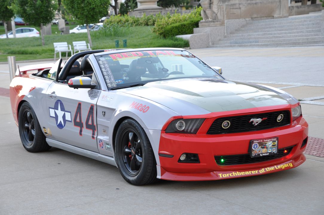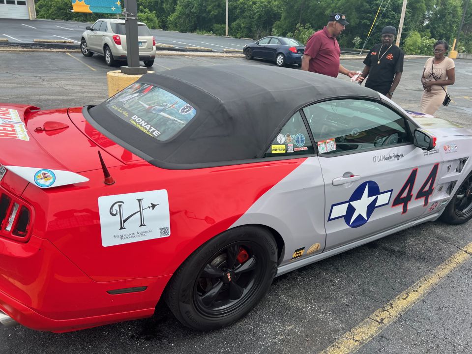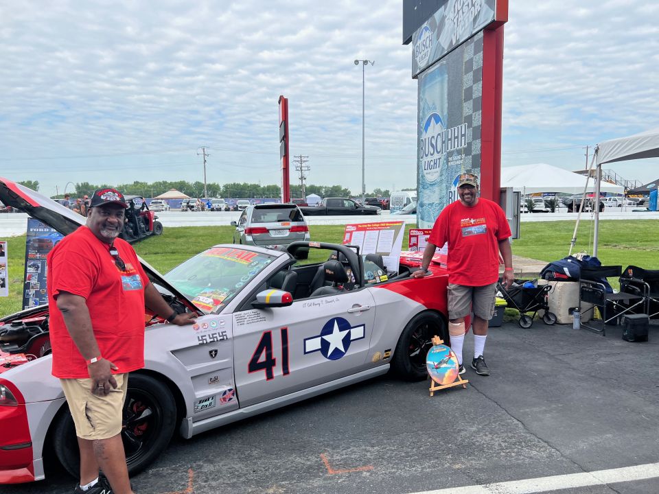 The P-51 Red Tail Mustang, honoring the Tuskegee Airmen, made a special appearance in St. Louis for the debut of the Illinois 300 NASCAR event in June of 2022.. It was a hit at the race, drawing a large crowd eager to learn more about the car and the legacy of the Tuskegee Airmen. The iconic Red Tail Mustang was also showcased at Scott Air Force Base and various other events around the St. Louis Metro area.